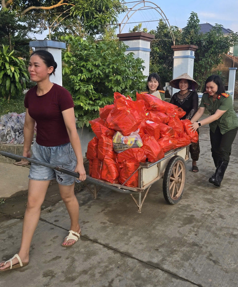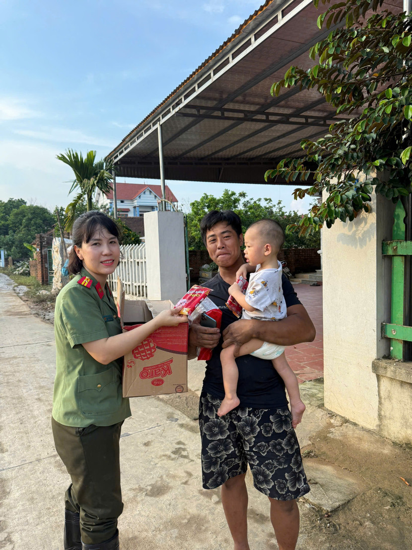 "Chứng kiến sự khó khăn của bà con nhân dân và CBCS công an Hà Nội đang gồng mình chống lũ, các thành viên trong đoàn công tác chúng tôi đặc biệt xúc động. Những món quà của Đoàn công tác chúng tôi cũng chính là tấm lòng, thể hiện tinh "thần tương thân tương ái", "lá lành đùm lá rách", mong cùng chung tay, sẻ chia nghĩa tình đồng bào để người dân nơi này vượt qua được những khó khăn sau thiên tai, nhanh chóng ổn định cuộc sống" - Trung tá Đặng Lan Hương xúc động chia sẻ.