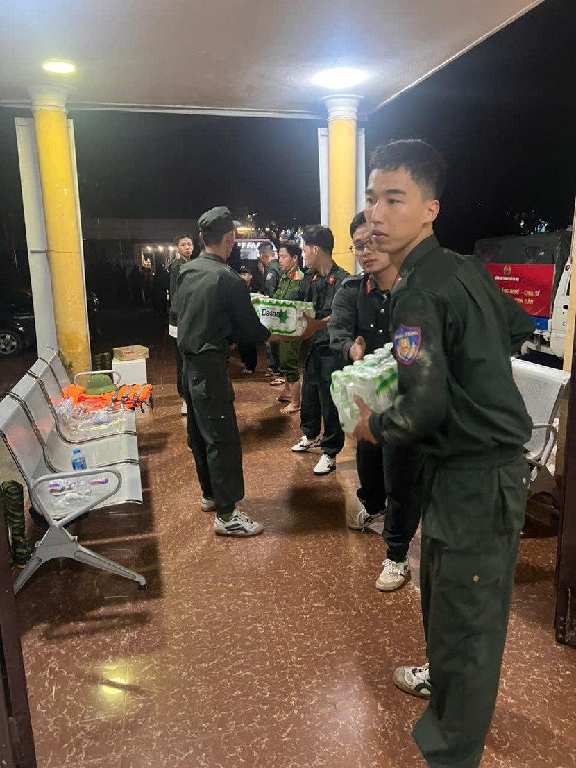 Chiều tối ngày 10/10, đoàn công tác đã trực tiếp đến xã Trung Giã, mang theo hơn 100 thùng nước, 300 suất cơm, 200 bánh mỳ, 200 trứng luộc, 20 thùng sữa, 30 thùng mì tôm, cùng 100 suất lương khô và bánh kẹo. Tổng trị giá 30 triệu đồng, số quà sẽ được trao tận tay CBCS và bà con đang bị cô lập.