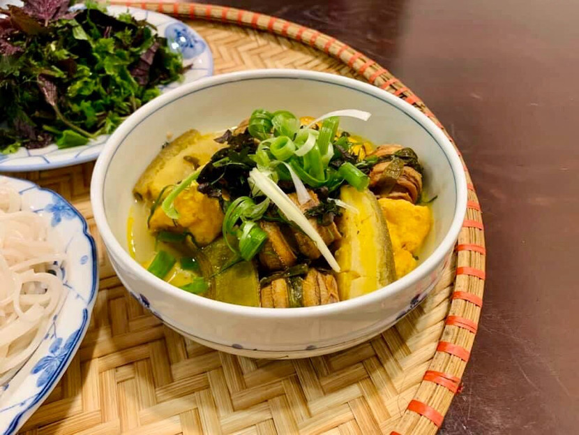 Chuối được đem xào với lươn hoặc ốc, thêm chút thịt ba chỉ đã rang cháy cạnh, nêm nếm thêm chút mẻ, mắm tôm, nghệ cho vừa đủ độ thơm nồng. Cứ thế mà om cho quện, trước khi bắc xuống ăn thì thả một nắm hành lá, tía tô, lá lốt, vậy là có món om chuối đậu thơm. Những miếng chuối xanh khi om ăn vừa dẻo, vừa bùi mà không hề nát. Đây là món ăn dân dã rất quen thuộc lại dễ chế biến, tưởng chân quê nhưng nay cũng vào thực đơn các nhà hàng hạng sang.
