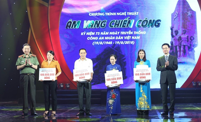 Tại chương trình, Bộ Công an đã trao 600 triệu đồng từ quỹ “Nghĩa tình đồng đội” để tặng 6 gia đình liệt sĩ công an, mỗi gia đình 100 triệu đồng. Thượng tướng Tô Lâm, Bộ trưởng Bộ Công an đã trực tiếp trao cho đại diện các gia đình liệt sỹ.