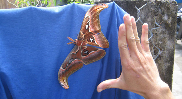 Cánh bướm to bằng bàn tay người lớn, hai râu trước giống hệt hai chiếc lông gà, hai đuôi sau như đầu hai con rắn.