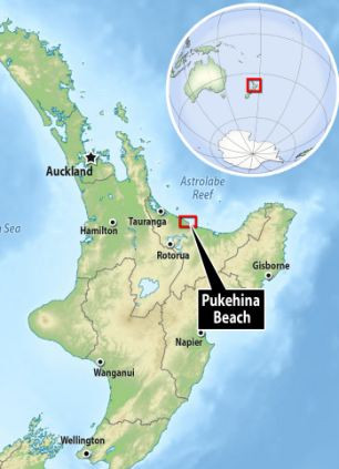 Xác sinh vật này được tìm thấy trôi dạt vào bờ biển Pukehina-