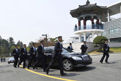 Một đoạn băng đầy ấn tượng được lan truyền khắp giới truyền thông quốc tế hôm 27-4 là hình ảnh 12 vệ sĩ chạy bộ hộ tống xe chở nhà lãnh đạo Kim Jong-un di chuyển về phía Bắc làng đình chiến, trở lại biên giới Triều Tiên ăn trưa và nghỉ ngơi trước phiên họp buổi chiều. Đây chính là lực lượng an ninh hộ tống bám sát từng bước chân của nhà lãnh đạo Triều Tiên khi ông bước về phía đường ranh giới quân sự phân chia hai miền. Họ được cho là những binh sĩ được tuyển mộ nghiêm ngặt, thiện chiến, giỏi võ và có khả năng ngắm bắn chính xác.