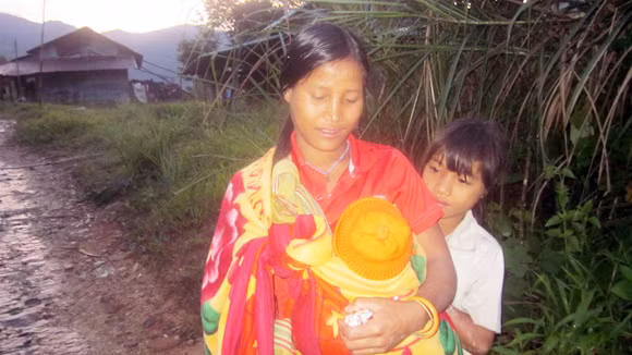 Chúng tôi tìm đến làng Xõa, xã Đăk Ang, Đăk Glei, Kon Tum khi H’oai đang khắc khổ địu đứa con mới hơn 12 tháng tuổi, chưa kịp đặt tên. Ngày ấy, đúng vào dịp bỏ mả cho vợ, cũng là ngày anh Y Hơn (39 tuổi, trú làng Xõa, xã Đăk Ang) phải giao lại con cho phía họ ngoại nuôi cùng tất cả nhà cửa, trâu bò để trở về nhà mẹ đẻ của mình. Nếu anh ở lại thì phải lấy chị hoặc em vợ.