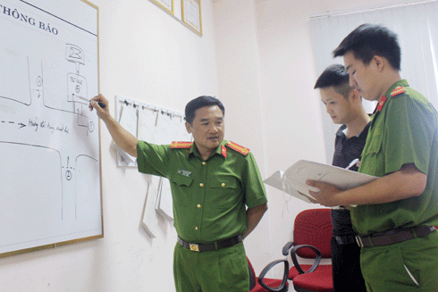 Trung tá Trương Quốc Hiên (bên trái) cùng đồng đội lên phương án điều tra một vụ án