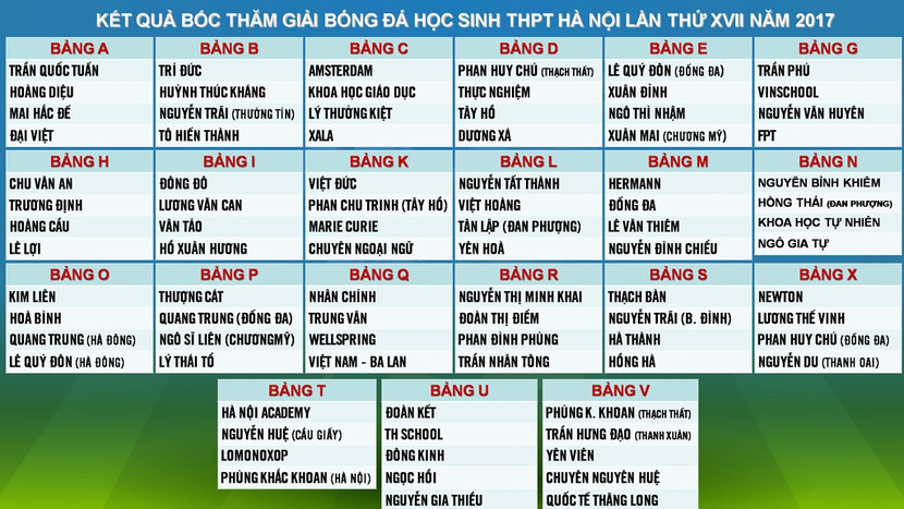 Ngay sau đó, lễ bốc thăm đã diễn ra với sự hỗ trợ về chuyên môn của các trọng tài thuộc LĐBĐ Hà Nội. 21 bảng đấu đã được xác định như sau: