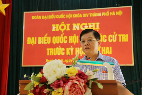 Đại tá Đào Thanh Hải, Phó Giám đốc CATP Hà Nội, đại diện Đoàn ĐBQH TP Hà Nội thông báo ý kiến của UBND TP về trả lời kiến nghị của cử tri tại Kỳ họp thứ nhất Quốc hội khóa XIV