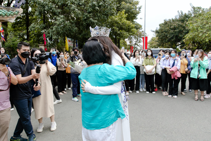 Trong lần trở về Đồng Nai này, điểm đến đầu tiên của Mai Phương chính là Văn miếu Trấn Biên - một trong những di tích lâu đời với hơn 300 năm tuổi, bảo tồn, gìn giữ và tôn vinh các giá trị văn hóa – giáo dục của vùng đất Biên Hòa. Cô cùng với Á hậu Phương Nhi đã làm lễ dâng hương báo công tại đây. Nàng hậu đã không kiềm được nước mắt trước sự yêu quý của người hâm mộ, đoàn viên và đặc biệt với sự xuất hiện bất ngờ của bố mẹ nàng hậu. Cả hai cũng đã gửi tặng những bó hoa tươi thắm, chào mừng Mai Phương trở về quê hương với cương vị Hoa hậu cao quý.