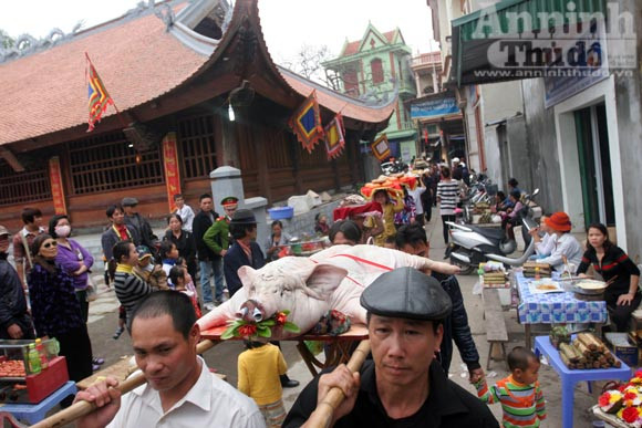 Người dân đảo Hà Nam rước lễ vật vào chầu tại đình Phong Cốc