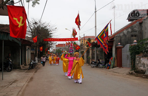 Bà con dân đảo Hà Nam tưng bừng rước lễ vào đình Phong Cốc