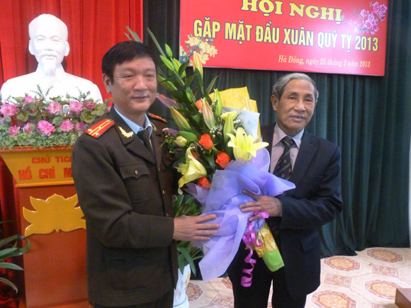 Chỉ huy CAQ Hà Đông chúc mừng CLB nhân dịp đầu xuân năm mới
