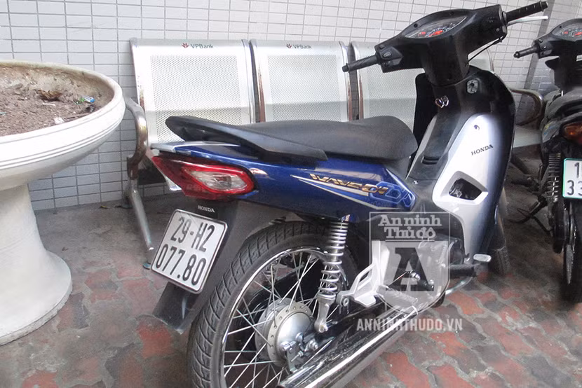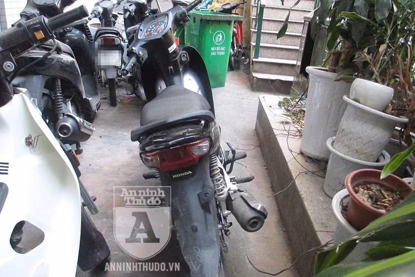 Hai trong 3 chiếc xe máy mà nhóm đối tượng dùng làm phương tiện đi cướp. Bình thường, chúng đều tháo BKS xe ra