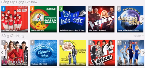 Đại lộ tình yêu và Đố ai hát được tiếp tục nắm giữ vị trí thứ 2 và thứ 3 trên BXH tuần này. Trong khi đó, The Voice Mỹ mùa 6 vừa ra mắt video đêm thi đầu tiên đã nhanh chóng chiếm giữ vị trí thứ 4 BXH với số lượt xem tăng hơn 0,76 triệu lượt so với tập đầu tiên mùa trước. Ngoài những giọng ca xuất sắc, những màn giằng co thí sinh của các huấn luyện viên, chương trình còn mang đến "hơi thở" mới với sự xuất hiện của 2 vị huấn luyện viên mới, Shakira và Usher, thế chỗ của Christina và CeeLo cùng 2 “lão làng” Adam và Blake.