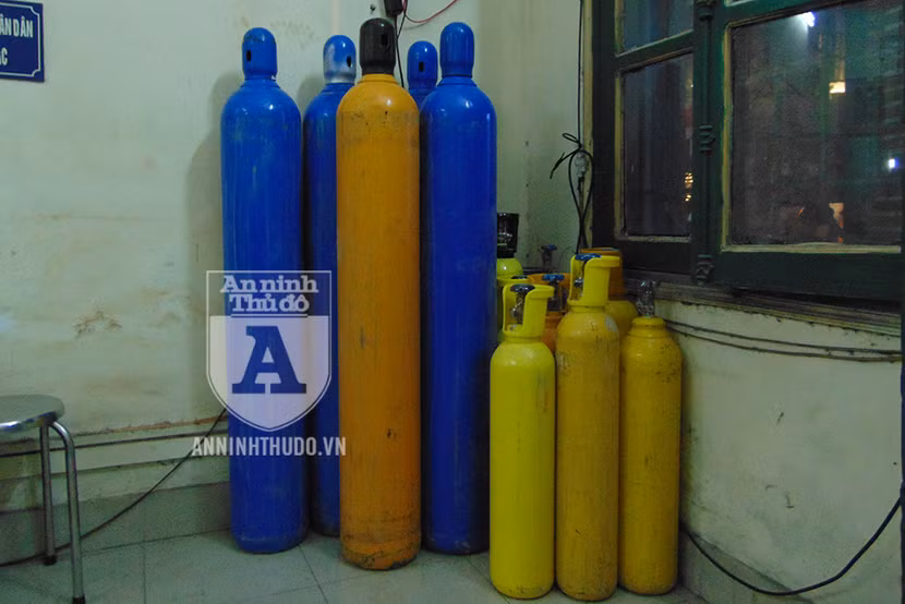 Trong quá trình kiểm tra, cảnh sát phát hiện chiếc xe nói trên chở theo 16 bình khí đủ loại, trong đó có 5 bình cỡ lớn (cao 1m30, đường kính 20cm), và 11 bình cỡ vừa (cao 70cm, đường kính 15cm).