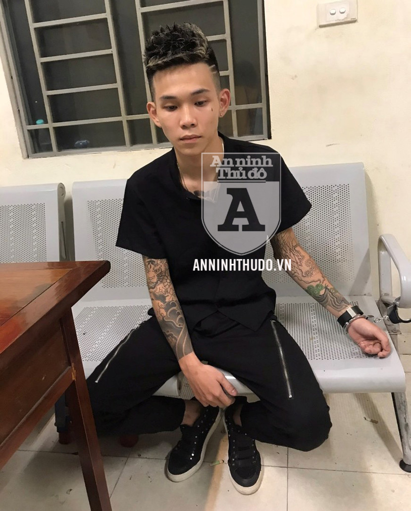 Khi thấy cảnh sát, nam thanh niên xăm trổ kín 2 tay tỏ ra run sợ, quanh co. Sau đó, trong quá trình kiểm tra, cán bộ CSCĐ phát hiện người này giấu trong túi quần 1 gói nilon đựng 10 viên nén hình tam giác, màu xanh lục.