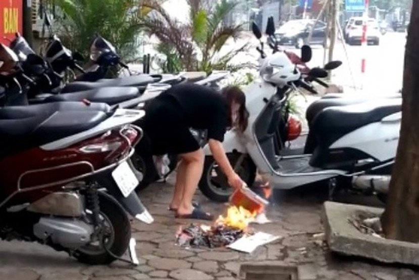 Đặc biệt, cũng chính tại địa điểm trên, cách đây gần 1,5 năm, đã có sự việc đốt vàng mã gây phẫn nộ tương tự. Đó là vào ngày 2-3-2018, một phụ nữ cũng hóa vàng ngay trên vỉa hè này, cạnh nhiều xe máy. Khi có gió, nhiều mẩu tiền vàng cháy dở đã bị thổi vương vãi, khiến chính người đốt cũng phải bối rối.