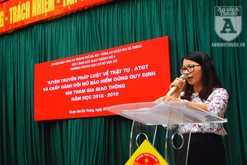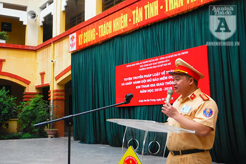 Phát biểu tại buổi lễ, Thiếu tá Nguyễn Tuấn Anh – Phó Đội trưởng Đội CSGT Số 4, “Công an quận Hai Bà Trưng và Phòng CSGT tổ chức buổi tuyên truyền ngày hôm nay nhằm trang bị vốn kiến thức nhất định về ATGT cho các em học sinh. Mong rằng trong thời gian tới, các em học sinh đã được tuyên truyền sẽ thực hiện nghiêm chỉnh các quy định về ATGT”.