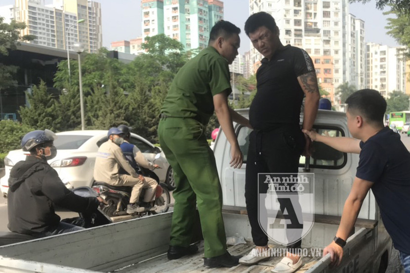 Sau một đoạn bỏ chạy, người đàn ông trên đã bị giữ lại và được yêu cầu đi về khu vực chốt 141. Tại đây, đối tượng xăm trổ tỏ thái độ tự tin, nói rằng anh ta bỏ chạy vì có một con dao gấp trong túi quần.