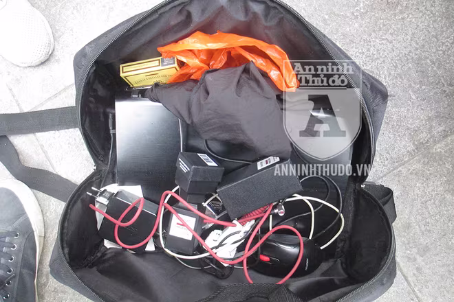 Nguyên bộ dụng cụ phục vụ cho "cuộc bay" trong túi đối tượng: Ma túy, đĩa "xài ke", khăn, laptop, loa...