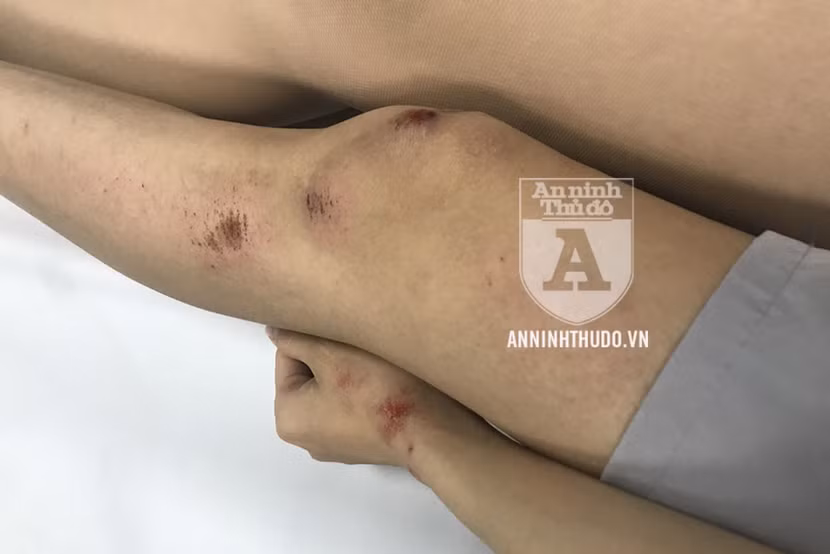 Sau đó, chị N. đã được đưa vào cấp cứu tại Bệnh viện Đại học Y Hà Nội, với nhiều vết bầm tím, xước xát trên cơ thể, khiến chị phải nghỉ làm 5 ngày.