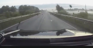 ANTĐ - Chiếc ô tô đang lưu thông thì bị một đàn quạ tấn công. Rất may trên đoạn đường vắng nên không xảy ra tai nạn đáng tiếc.