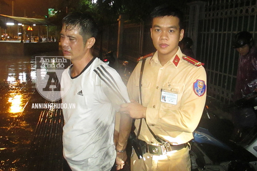 Phát hiện hành vi bất thường này, các cán bộ của tổ Y2/141 đã lập tức áp sát, khống chế, không để đối tượng phi tang. Biết khó thoát, người đàn ông này vùng bỏ chạy khỏi chốt 141, lao ra băng cắt 2 làn đường Giải Phóng hòng thoát thân, khi trời đổ cơn mưa lớn.