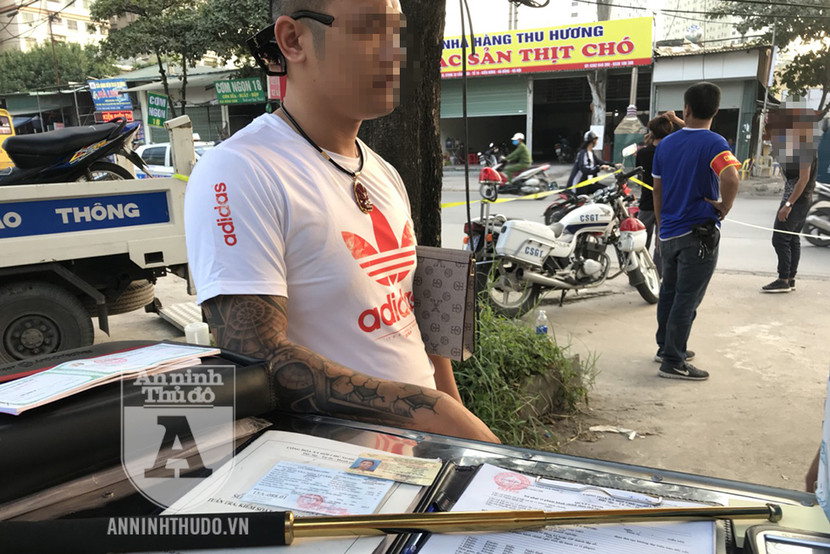 Trong quá trình kiểm tra, cảnh sát phát hiện đối tượng trên để một baton (gậy 3 khúc, là công cụ hỗ trợ bị cấm tàng trữ, sử dụng) ở cạnh ghế lái. Khai thác tại chỗ, người đàn ông xăm trổ thừa nhận đó là baton của anh ta, được mang theo để "phòng thân".