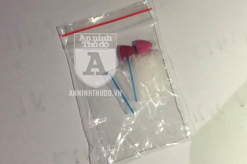 Kiểm tra tại chỗ, cảnh sát phát hiện nam thanh niên trên nắm chặt một túi nilon trong lòng bàn tay phải. Trong túi này có 2 túi nilon khác đựng các tinh thể màu trắng, cùng 2 viên nén hình tam giác, màu hồng.