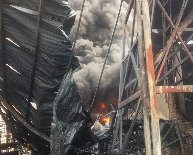 Khoảng 9h15, ngọn lửa bùng phát trở lại, một thùng phuy hoá chất bốc lên cao rơi xuống 1 mái nhà kho nằm sát đê gây cháy. Tuy nhiên đám cháy lan này đã nhanh chóng được khống chế.
