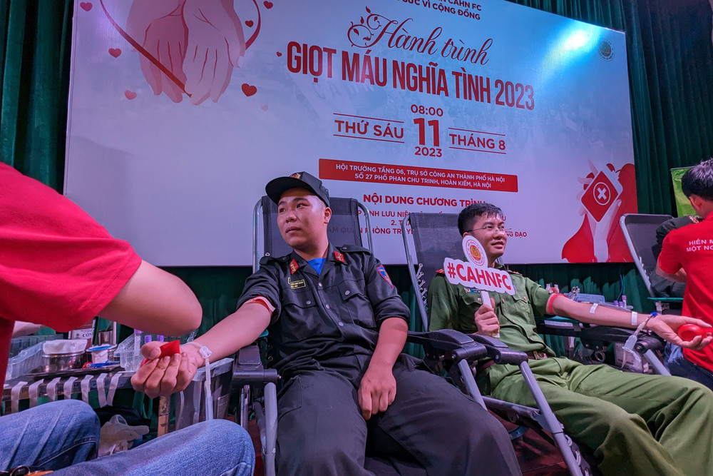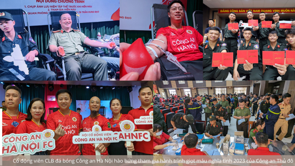 ANTD.VN - Sáng 11-8, các cổ động viên Câu lạc bộ Bóng đá Công an Hà Nội đã hào hứng cùng hàng trăm đoàn viên thanh niên, CBCS công an Thủ đô tham gia Hành trình "Giọt máu nghĩa tình" 2023 của Công an Hà Nội.