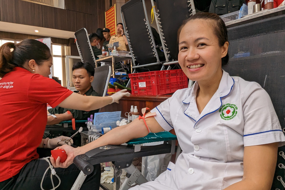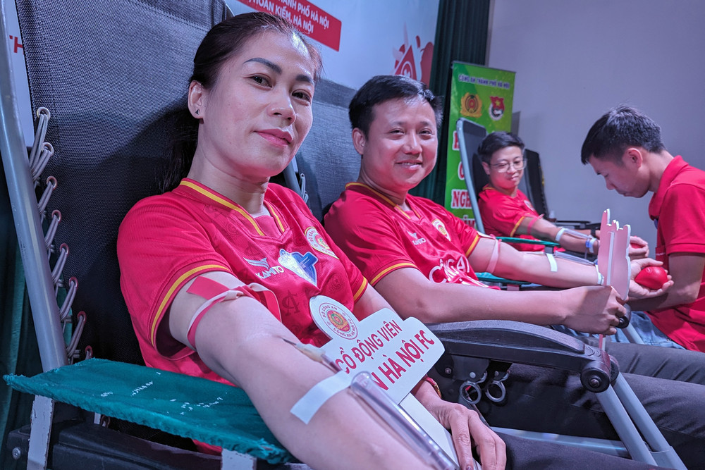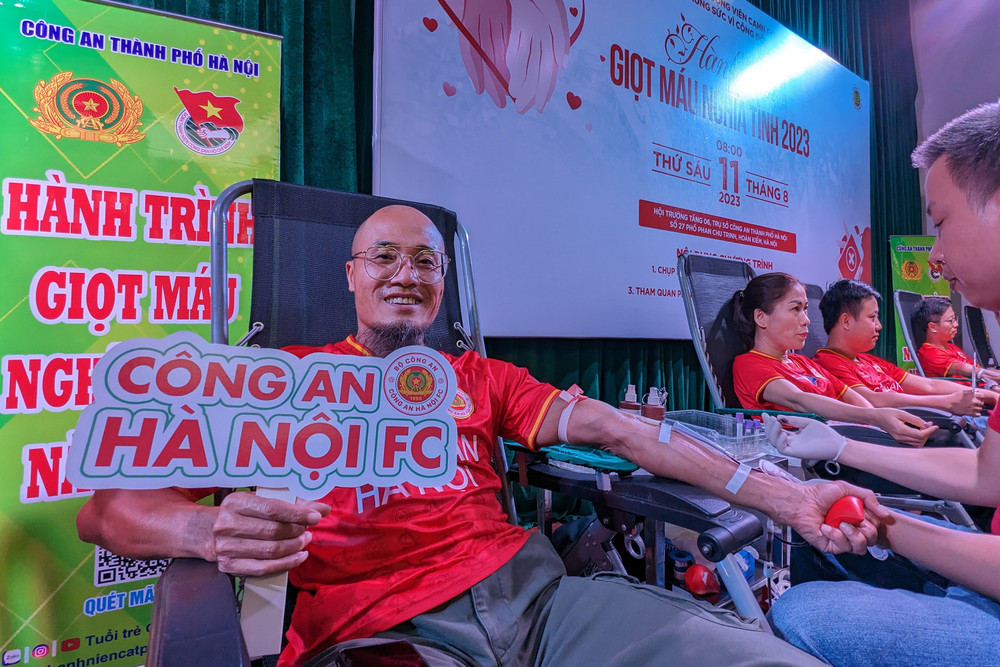 Cổ động viên Câu lạc bộ Bóng đá Công an Hà Nội hào hứng tham gia Hành trình "Giọt máu nghĩa tình"