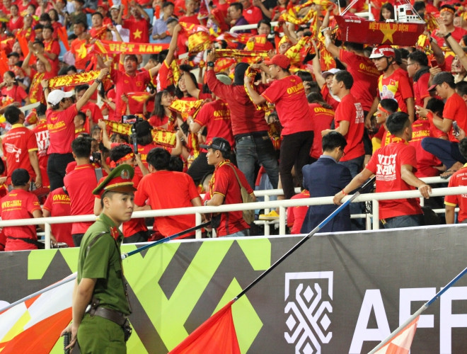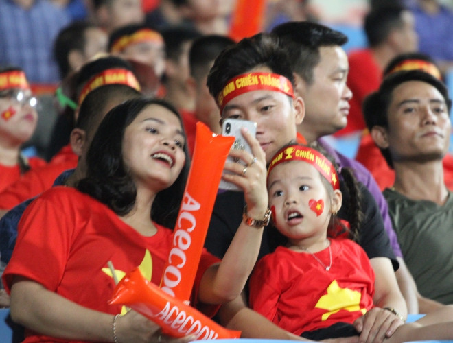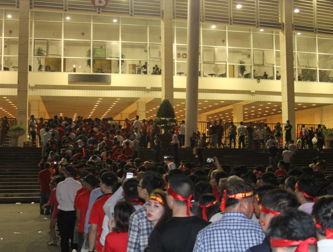 ANTD.VN - 19h30 trận đấu mới diễn ra nhưng từ trước đó nhiều giờ, rất đông cổ động viên Việt Nam đã kéo về sân Mỹ Đình tạo bầu không khí sôi động, sẵn sàng "tiếp lửa" cho đội nhà trong trận đấu căng thẳng nhất vòng bảng.