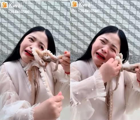 Nữ streamer ở thành phố Liên Vân Cảng, Giang Tô đã livestream cảnh ăn một con bạch tuộc sống trên ứng dụng mạng xã hội Kuaishou. Nhưng chưa kịp thực hiện, con bạch tuộc đã tấn công, bám chặt lên má và môi cô gái.