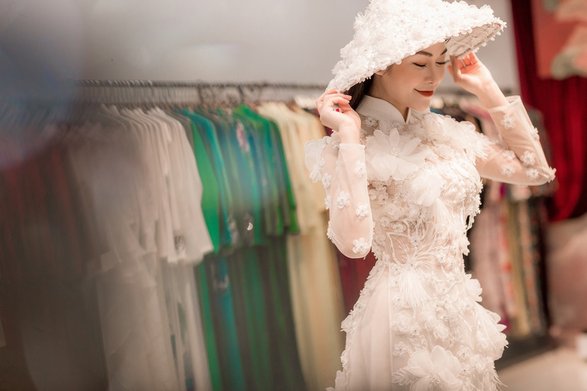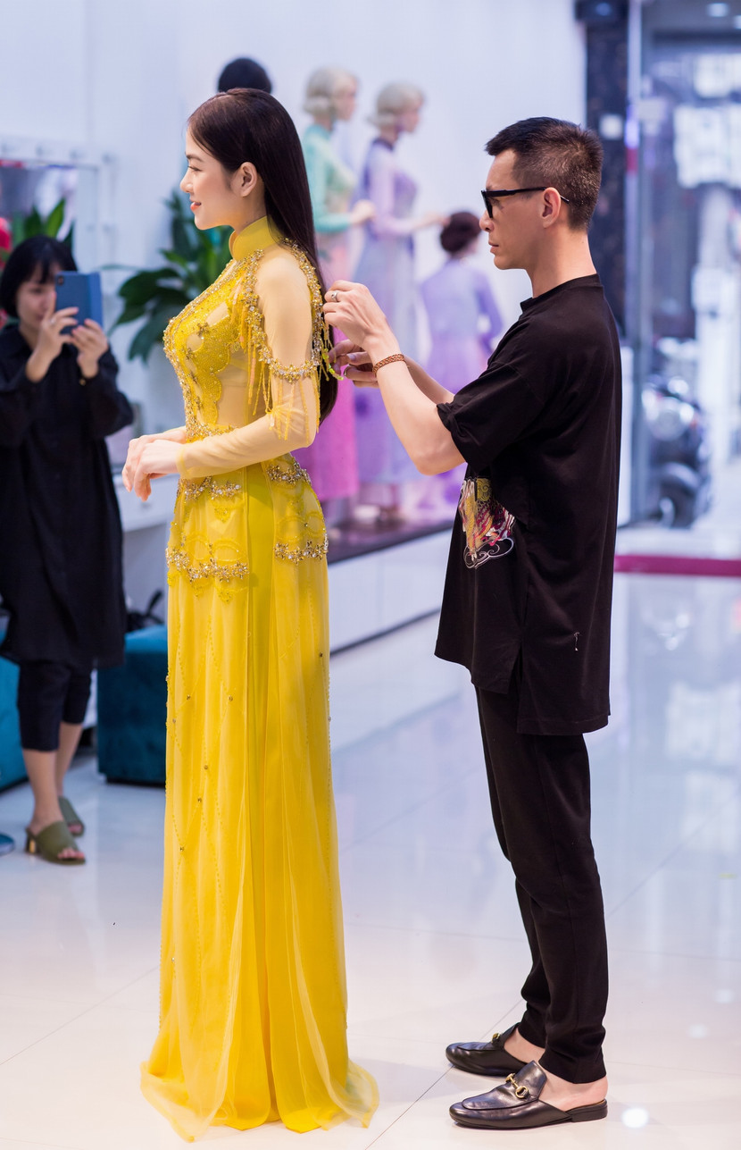 Tuyết Nga được nhà thiết kế Kenny Thái dành riêng cho cô một số mẫu áo dài để mang sang Singapore dự thi "Hoa hậu Áo dài Việt Nam 2019"