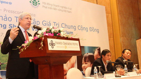 | Hội thảo “Tạo lập giá trị chung cộng đồng” do Phòng Thương mại và Công nghiệp Việt Nam (VCCI) phối hợp với Hội đồng doanh nghiệp vì sự phát triển bền vững và Friesland Campina tổ chức. Thuyết “Tạo Lập Giá Trị Chung” (Creating Shared Value) được Giáo sư Mark Kramer và Giáo sư Michael Porter đưa ra từ đầu năm 2011, đã chứng minh được tính hiệu quả và được cộng đồng doanh nghiệp quốc tế đánh giá cao. |