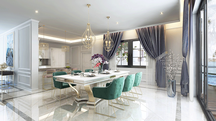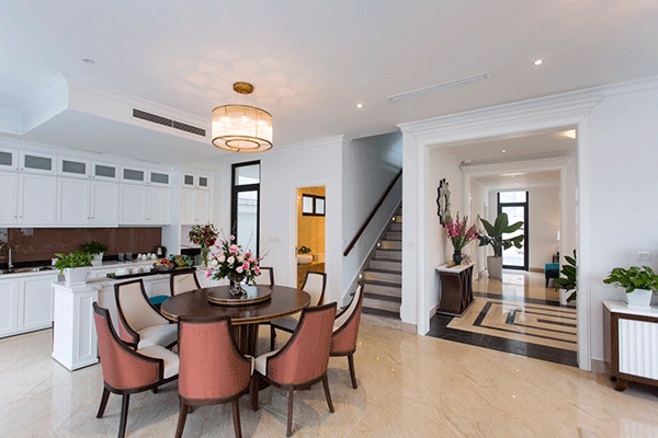 Mái ngói đỏ tươi máng lớn được kết tinh từ đất nung thủ công nhằm lưu trọn hơi thở đất đai trù phú. Vòm cửa biệt thự rộng đón vượng khí từ biển. Sắc trắng đồng bộ tạo nên sự trang nhã tuyệt đối cho không gian bên ngoài, hoàn toàn phù hợp với nội thất sắc xanh olive, màu đất nung terracotta, màu lúa mì hay màu hoa lavender quyến rũ…