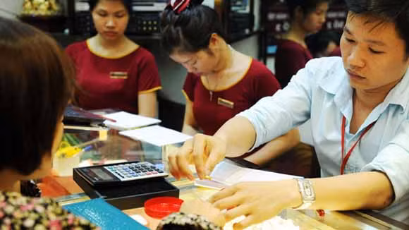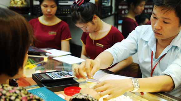 Giá vàng trong nước sáng nay vẫn ổn định ở mức thấp khiến thị trường giao dịch tương đối sôi động. Tại các cửa hàng của BTMC, lượng khách đến giao dịch khá tấp nập, lượng khách mua có phẩn “nhỉnh” hơn lượng khách bán.