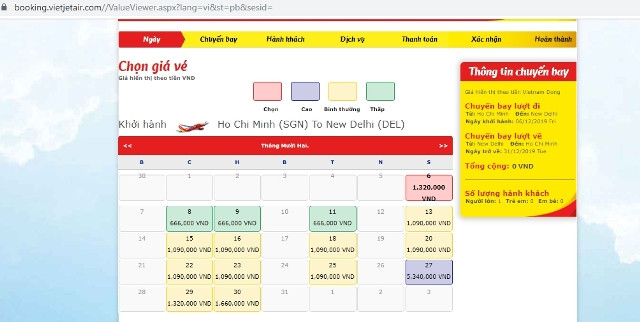 Cụ thể, đường bay TP.HCM - New Delhi khai thác từ ngày 6/12 với tần suất 4 chuyến/tuần (thứ hai, tư, sáu và chủ nhật).