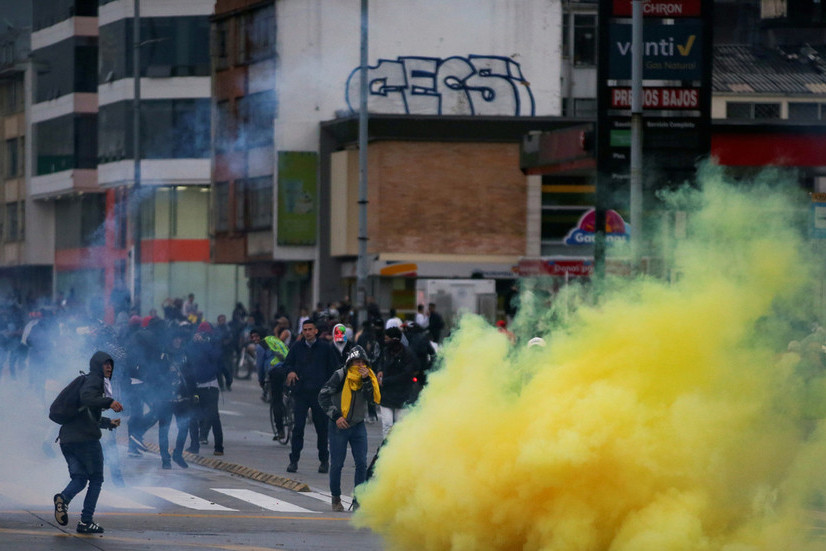 Cảnh quay từ Bogota cho thấy cảnh sát chống bạo động đã bắn hơi cay về phía những người biểu tình đeo mặt nạ ném đá vào họ. Truyền thông địa phương mô tả tình hình rất phức tạp.