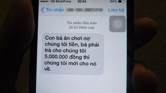 Đầu tiên, Tú nhắn tin đến số máy của bà K với lời lẽ đe dọa: “Con bà ăn chơi nợ chúng tôi tiền, bà phải trả cho chúng tôi 5.000.000 đồng thì chúng tôi mới cho nó về. Nếu không có tiền thì sang bên kia mà chuộc nó về”. Tú gửi cho bà K số tài khoản ngân hàng và yêu cầu gia đình phải chuyển tiền trước 11h trưa, nếu không sẽ bán H vào động mại dâm bên Trung Quốc.