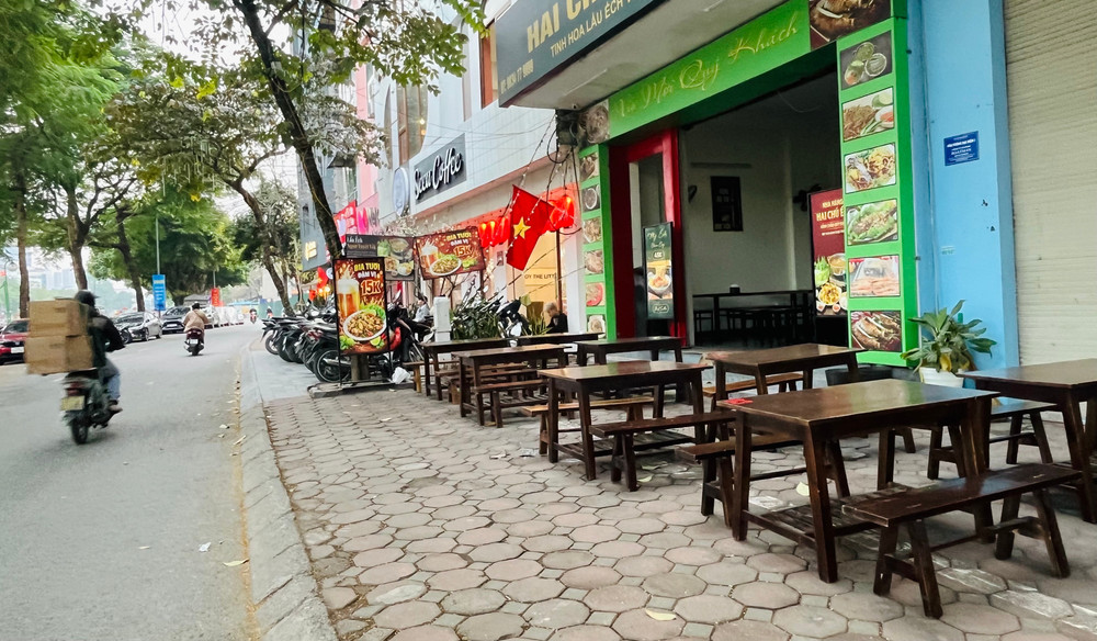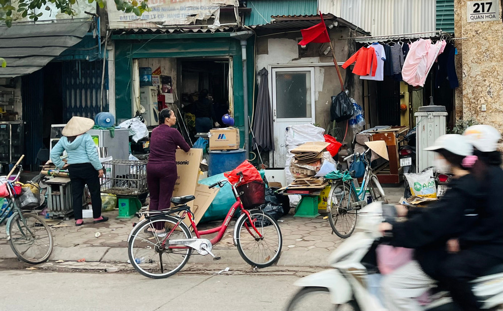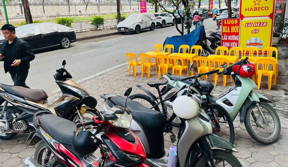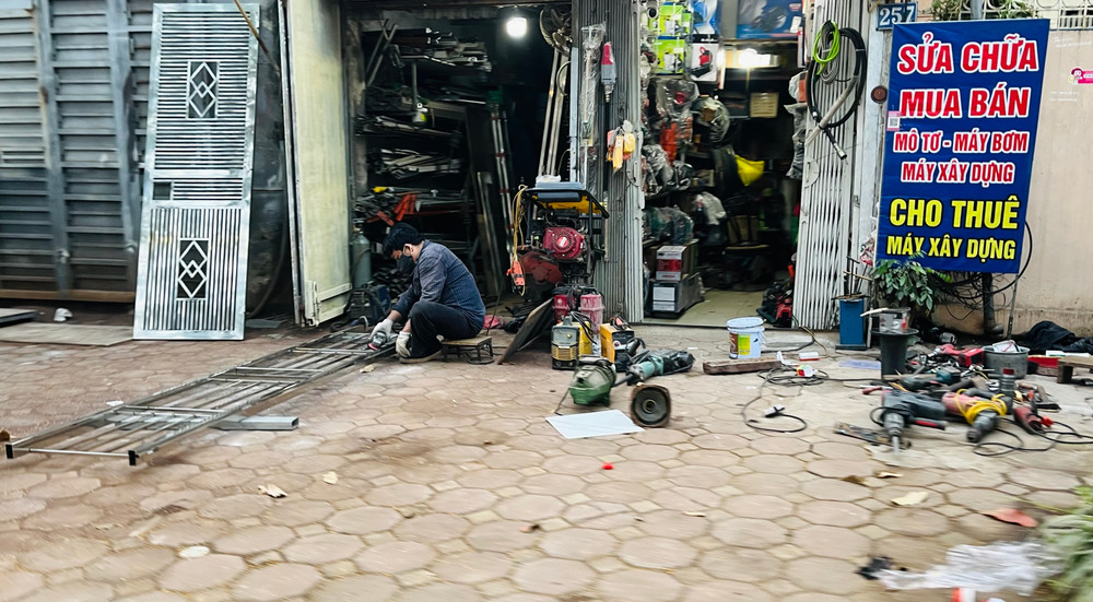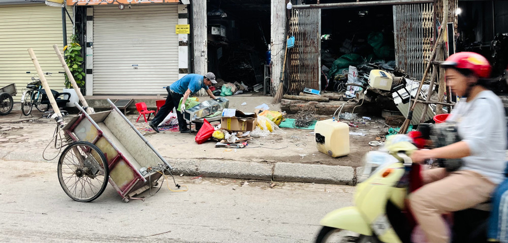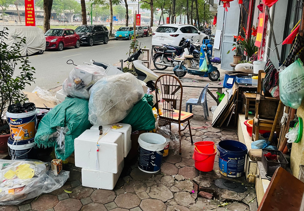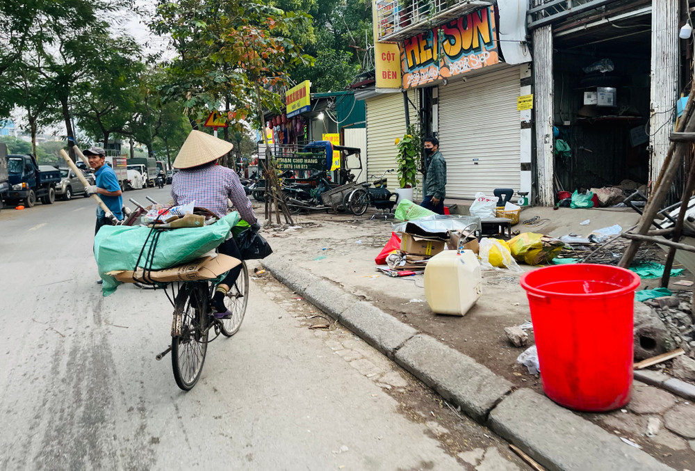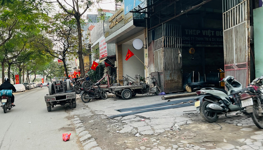ANTD.VN - Đoạn đường chỉ khoảng 200m song có tới hàng chục quán kinh doanh vật liệu xây dựng, mua bán phế liệu, quán bán đồ ăn uống, hàng nước... ngang nhiên chiếm dụng vỉa hè để kinh doanh, xả rác, tạo hình ảnh lộn xộn, nhếch nhác.