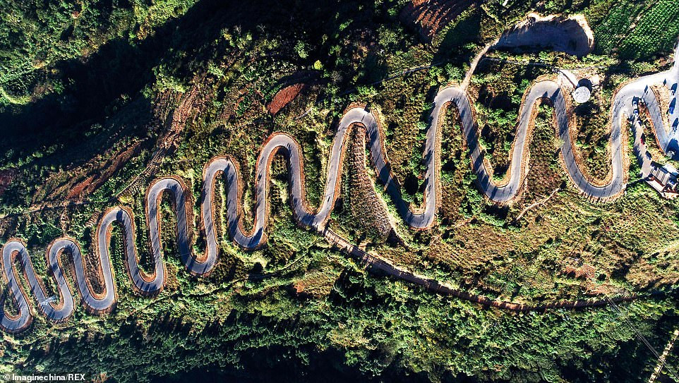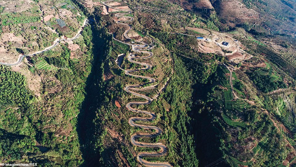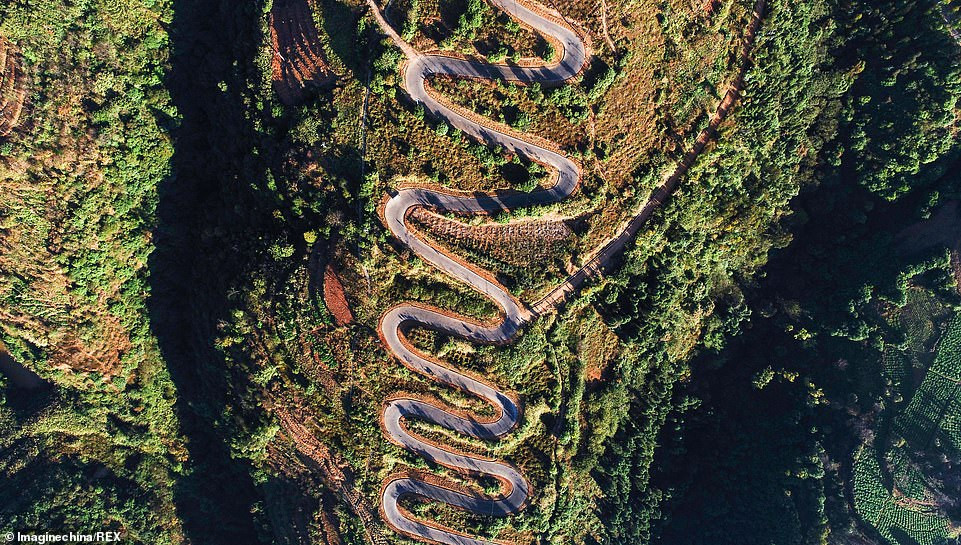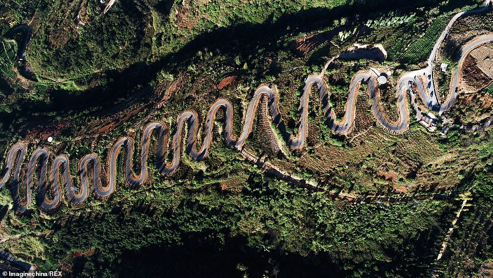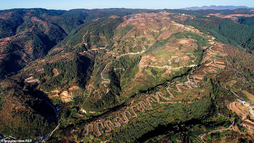 ANTD.VN - Với tổng cộng 68 khúc cua quanh co, con đường trên núi dài 6,3 km ở Vân Nam, Trung Quốc trông không khác nào một con rồng đang vờn quanh núi.