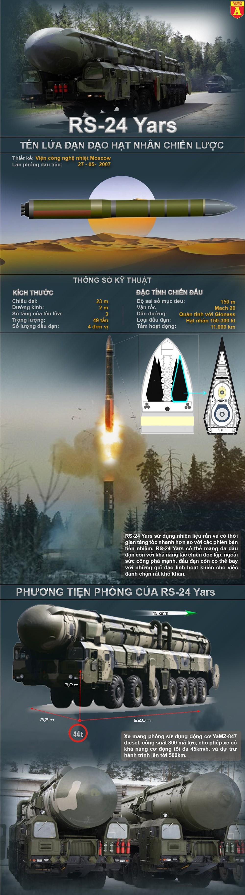 Nga là một cường quốc hạt nhân, trong số các vũ khí hạt nhân cực nguy hiểm phải kể đến tên lửa đạn đạo hạt nhân chiến lược RS-24.