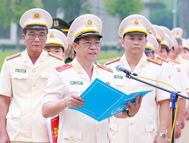 Thay mặt Đảng ủy, Ban Giám đốc và toàn thể lực lượng Công an Thủ đô, Thiếu tướng Đoàn Duy Khương - Ủy viên Ban Thường vụ Thành ủy, Bí thư Đảng ủy, Giám đốc CATP Hà Nội đã báo cáo trước anh linh Chủ tịch Hồ Chí Minh những thành tích xuất sắc của lực lượng CATP Hà Nội đạt được trong thời gian qua.