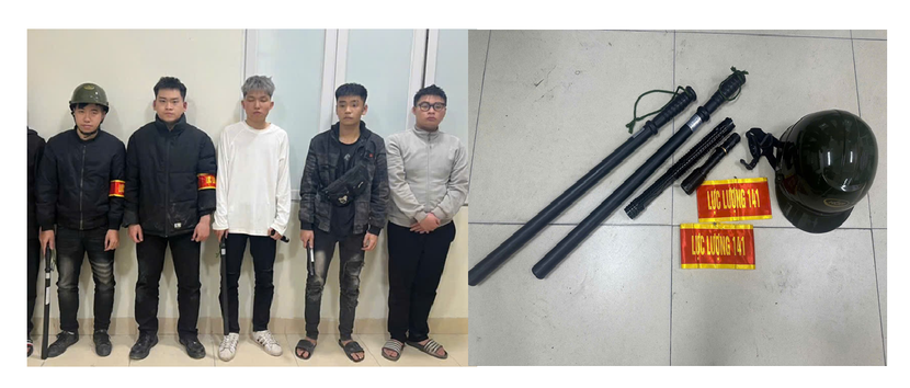 Khi bị phát hiện, các đối tượng mang theo gậy cao su, dùi cui điện và đeo băng đỏ ghi chữ “lực lượng 141” đang tiến hành dừng xe người đi đường. Tổ công tác đã cùng người dân đưa các đối tượng về trụ sở Công an phường Thanh Nhàn để đấu tranh, làm rõ.