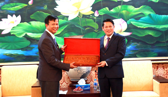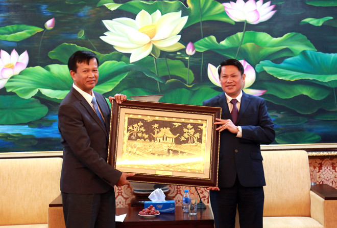 Đại tá Nguyễn Văn Viện trao tặng quà lưu niệm cho đoàn công tác Tổng cục Công an quốc gia - Bộ Nội vụ Campuchia