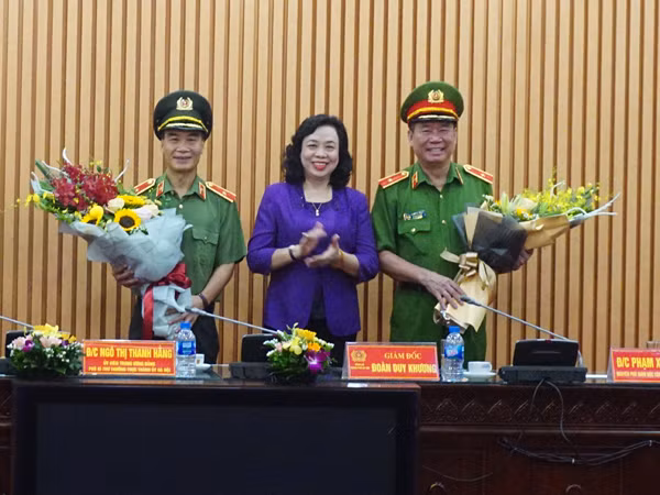 Đồng chí Ngô Thị Thanh Hằng cùng tập thể Đảng ủy, Ban Giám đốc CATP chúc mừng, cảm ơn những đóng góp to lớn của hai đồng chí Thiếu tướng Phạm Xuân Bình và Thiếu tướng Đinh Văn Toản trong thời gian qua