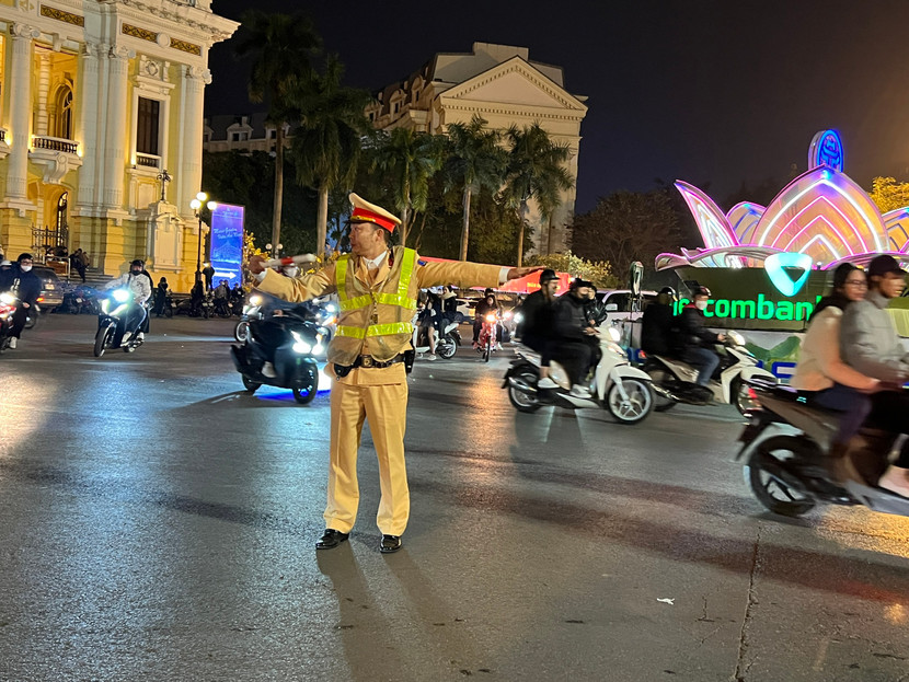 | Dù Giao thừa đã điểm, nhưng những chiến sĩ Công an Hà Nội vẫn gác lại niềm vui chung để thực hiện nhiệm vụ được giao |
