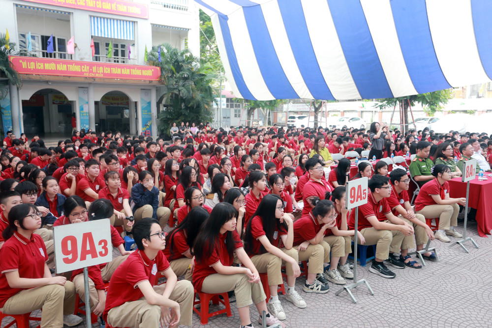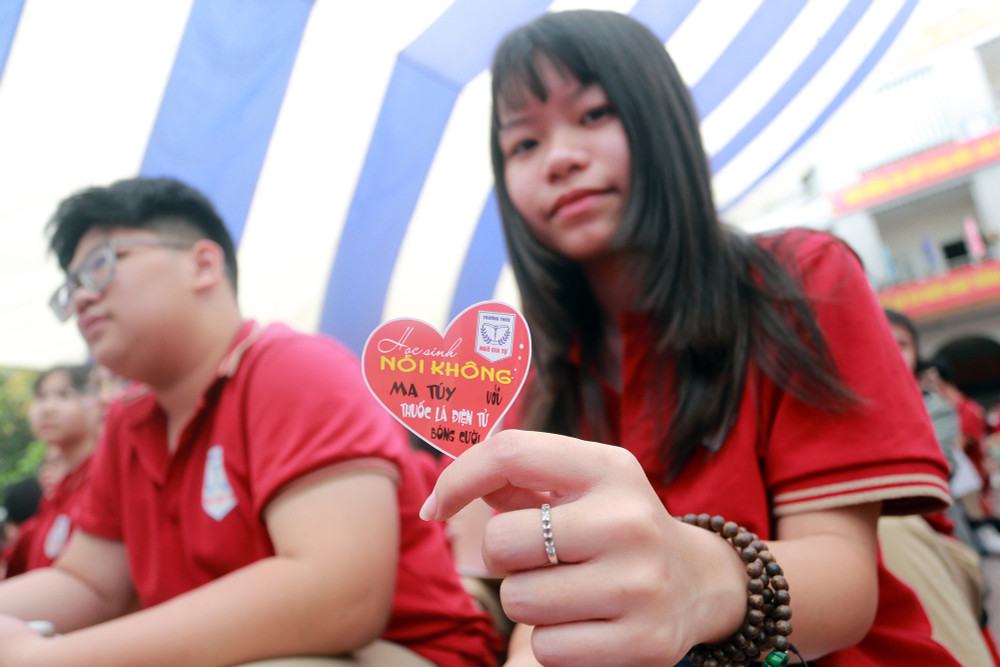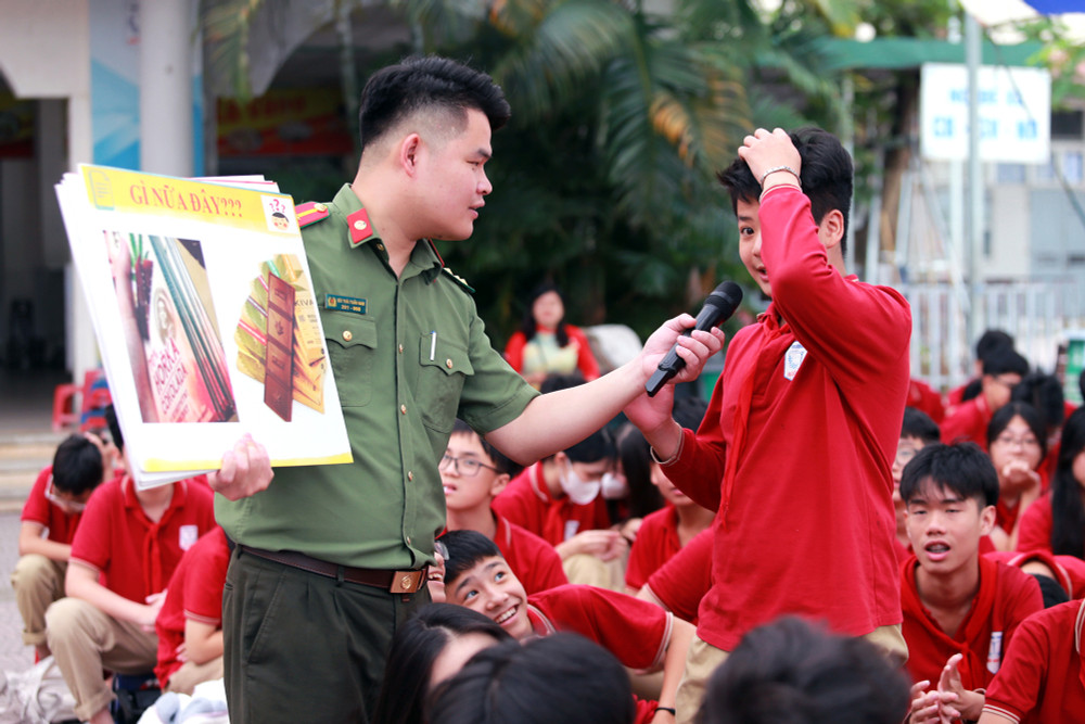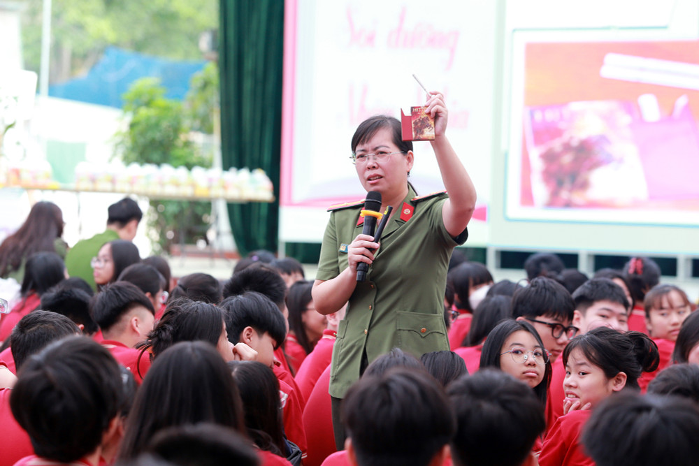 ANTD.VN - Ngày 12-5, Phòng Tham mưu CATP Hà Nội tổ chức Chương trình tuyên truyền phòng chống ma túy trong học đường cho gần 600 em học sinh Trường THCS Ngô Gia Tự (Hai Bà Trưng, Hà Nội). Tại buổi tuyên truyền, các em học sinh được hướng dẫn cách nhận biết cũng như tác hại của từng loại ma túy (ma túy an thần, ma túy kích thích, ma túy gây ảo giác, cần sa, heroin), cách nhận biết các biểu hiện thường gặp đối với người nghiện ma túy và thủ đoạn của tội phạm ma túy.