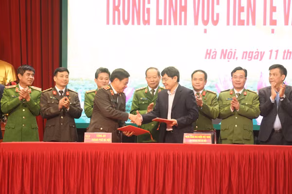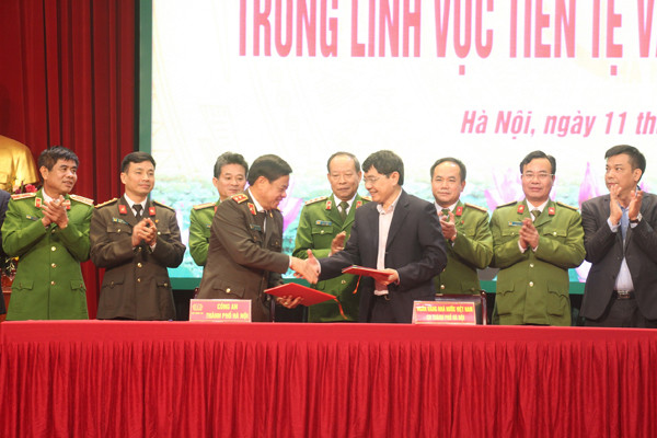 Trung tướng Đoàn Duy Khương, Ủy viên Ban Thường vụ Thành ủy, Bí thư Đảng ủy, Giám đốc CATP Hà Nội ký kết chương trình phối hợp với Ngân hàng Nhà nước Việt Nam, chi nhánh Hà Nội về đảm bảo an ninh trật tự trong lĩnh vực tiền tệ và hoạt động ngân hàng